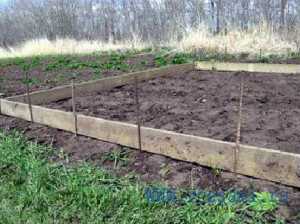 - Готовые колья вставляют в землю двумя параллельными рядами на расстоянии 50 см друг от друга.