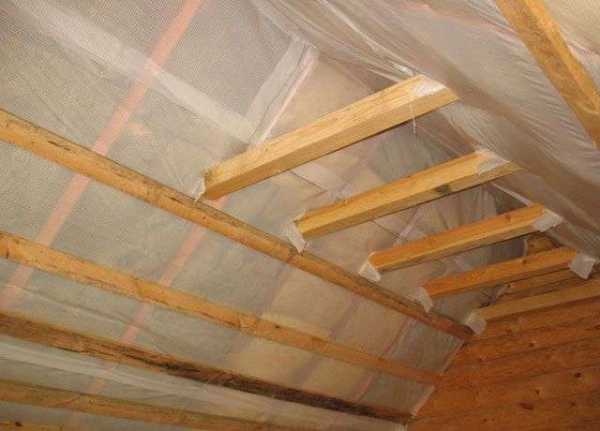 После закрепления пароизоляции выполняют деревянную обрешетку рейками 25 мм.