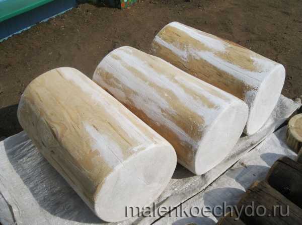Я взяла 5 толстых и 6 тонких чурок. Для колес кабины мне понадобилось 4 сосновых спила. Конечно же пилила их не я, а наш дедушка:)