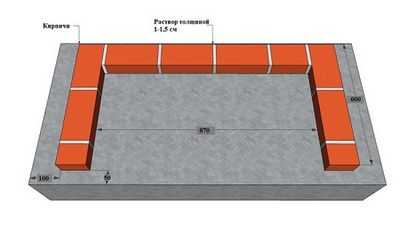 Участок горения выкладывают из шамотного кирпича, устойчивый к воспламенению, который укладывается на смесь из цемента и песка. Иногда применяют глиняно-песчаную смесь. Стены строят из красного облицовочного кирпича при помощи цементно-песочной смеси.