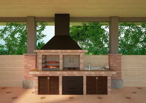 - В более сложных конструкциях могут присутствовать и мангал, и гриль (причем они могут быть даже съемными), а также разделочный стол и раковина (в этом случае следует вмонтировать в конструкцию водосток).