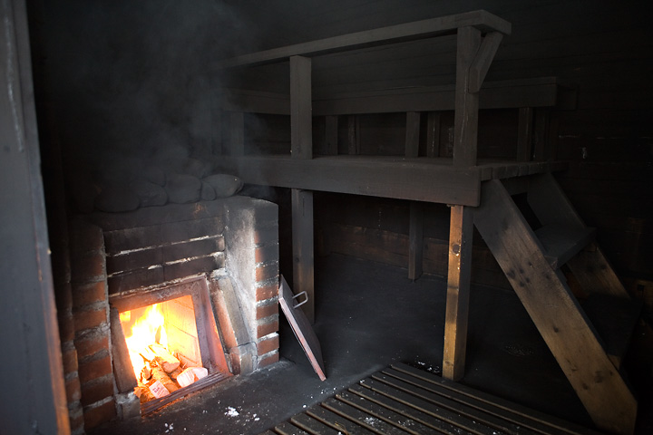 До сих пор можно встретить приземистые, небольшие баньки, в которых парятся по черному. Почему этот способ называется именно так? В такой печи нет дымохода. По сути это очаг, горящий в помещении, дым из которого выводится через приоткрытые двери и окошки.