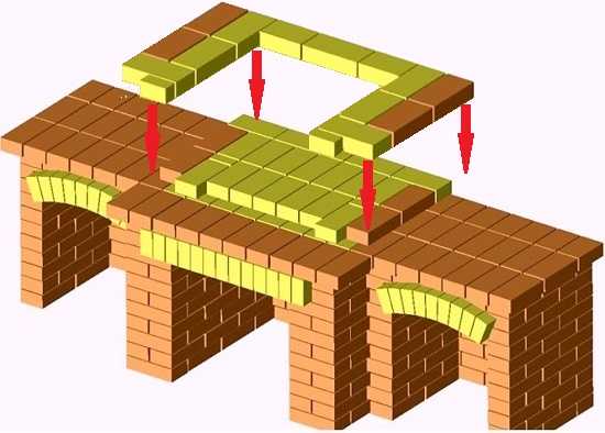 - Поверх дровника укладываются кирпичи методом в полкирпича.