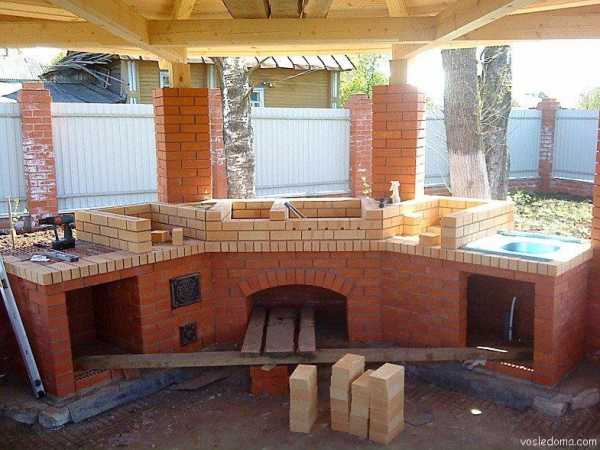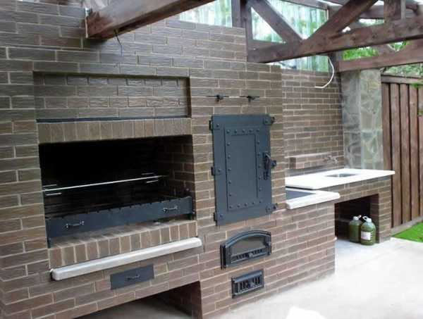 Печь – мангал для беседки. Фото модели с плитой и раковиной