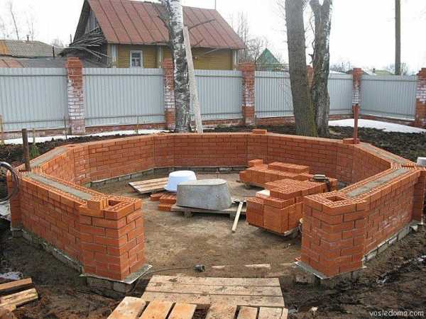 - Стенки следует выкладывать в полкирпича до 5 рядом.