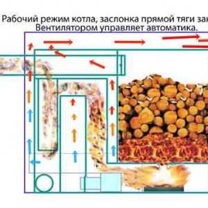 Основной особенностью устройства печей, использующих процесс пиролиза, является разделение топки на две части. Эти пространства разделены колосником, на который загружают топливо. Первичный воздух поступает сверху вниз и проходит через слой загруженного топлива.