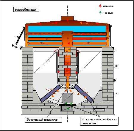 Для описания принципа работы пиролизной печи необходимо взглянуть на её внутреннее строение и конструктивные элементы.