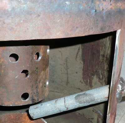 Внутреннюю часть трубы после рассверловки отверстий тщательно шлифуют, чтобы не осталось заусенцев. На них в процессе эксплуатации печки будет оседать сажа и копоть.