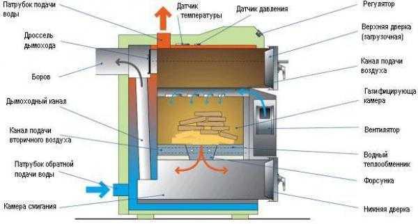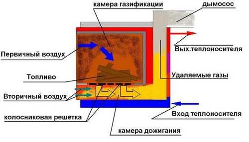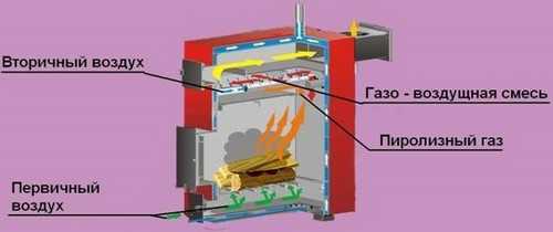 Совет! Для эффективной работы такой печи необходимо соблюсти такие условия: воздух в камеру газификации подается в ограниченных количествах. Для этого используется специальная заслонка. Камера, в которой происходит сжигание газа, должна быть оснащена воздуховодом, посредством которого в систему будет подаваться необходимое количество свежего воздуха.