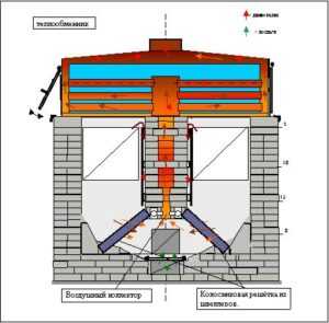 Для каждой печи, в зависимости от мощности, существует своя схема, поэтому мы рассмотрим только общие положения создания пиролизной печи своими руками.
