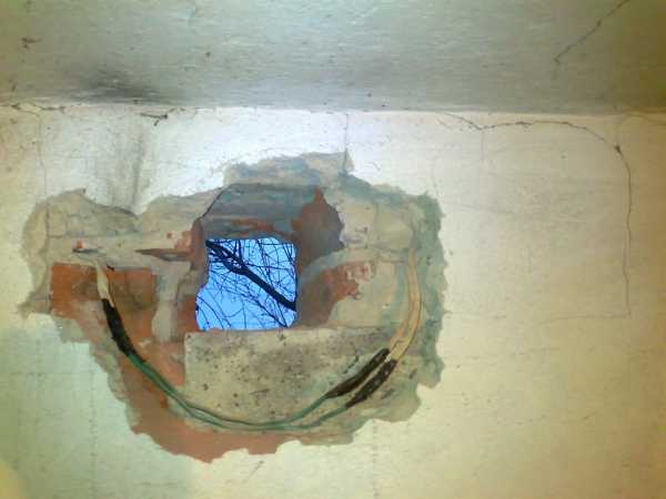Шаг 3. В центре крышки вырезается отверстие o10-15 см под трубу. Для этого можно воспользоваться молотком и зубилом.