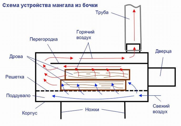 - колосниковая решетка, устанавливаемая в основании конструкции, она нужна для создания тяги и для размещения дров;