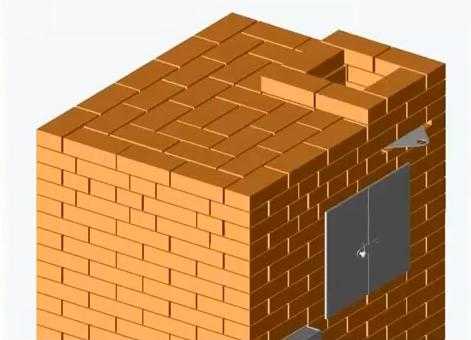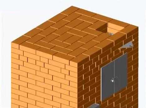 Дымоходный канал начинается с 23-го ряда кирпичной кладки и выходит на крышу. Толщина стенки дымохода должна быть не менее 0,5 кирпича. Сам дымоходный проход должен иметь не меньший размер и быть одинаковым по всей длине. Идеальная конструкция дымохода — абсолютно вертикальный канал без внутренних выступов. Общая длина дымохода от колосника до края трубы на крыше должна быть не менее 5 м. При монтаже дымохода следует предусмотреть установку заслонки.