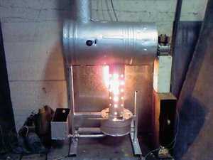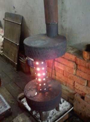 Пиролизная печь. Обыкновенные печки делают из листов сплава либо готовых ёмкостей (труб, бочек, баллонов). Это 2 замкнутые ёмкости, соединённые перфорированной трубой. В нижней ёмкости залито масло, которое разлагается при недостающем численности воздуха. В верхней ёмкости его пары интенсивно сгорают, подчеркивая много тепла. Температура регулируется маршрутом роста либо убавления подачи воздуха.Основной недочет этой печи — потребность постоянной очистки от накапливающихся в камере фракций, также нет возможности механического укрепления определённой температуры.