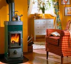 — продукты горения уходят в дымоход, тепло отдается помещению в виде излучения.