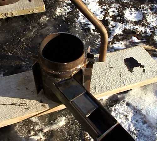 Более безопасный вариант конструкции — использование форсунки или чаши сгорания топлива с капельной подачей, но здесь возникает масса технологических и конститутивных сложностей. Изготовление этих узлов связано с работой очень точного современного оборудования. Форсунка должна работать при постоянном притоке сжатого воздуха, а подача топлива каплями в чащу связана с точными дозировками и подъемом отработки на высоту — над камерой сгорания.