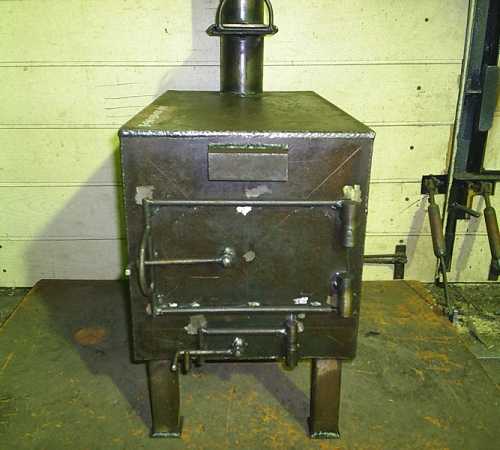Самодельная буржуйкаДля создания буржуйки понадобятся два контейнера из металла. Можно сделать их самостоятельно при помощи сварки. Буржуйка может быть любой формы, но предпочтительней сделать овальные контейнеры, так как теплоотдача у них будет выше.