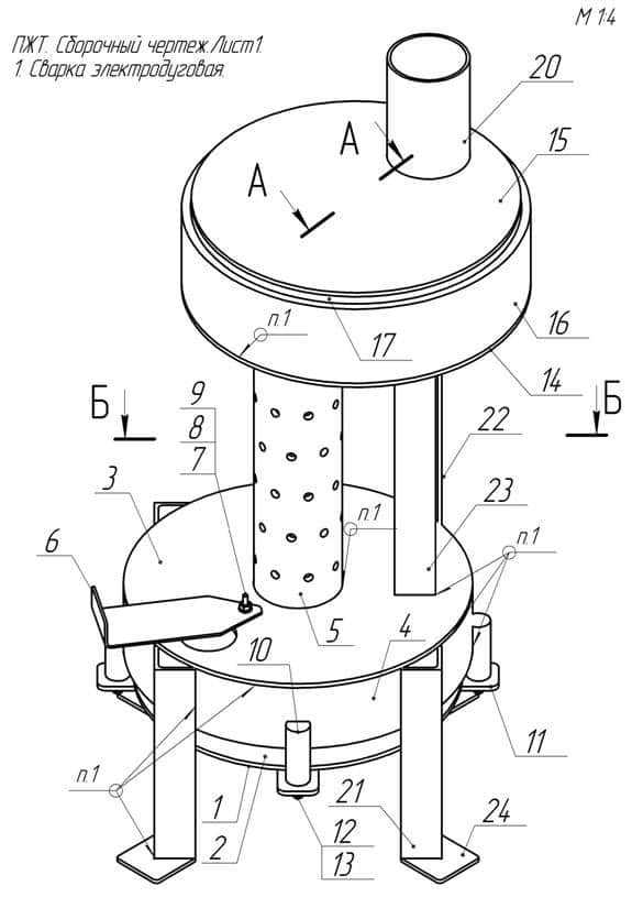 Сборочный чертеж буржуйкиКомбинированная буржуйка