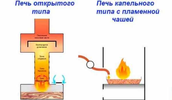 Буржуйка на отработанном масле открытого типа действуют по следующему принципу: