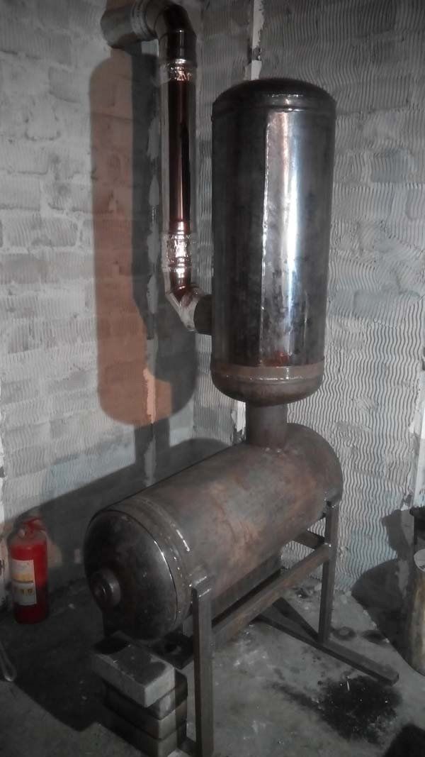 Печка, функционирующая на отработке, представляет собой устройство, которое состоит из следующих элементов: