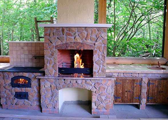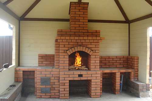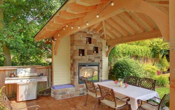 Вернуться к оглавлениюПечь-камин в беседке помимо вкусных блюд также подарит возможность согреться приятным теплом, что особенно актуально в холодные дождливые дни.