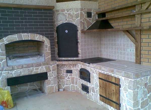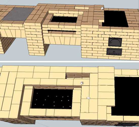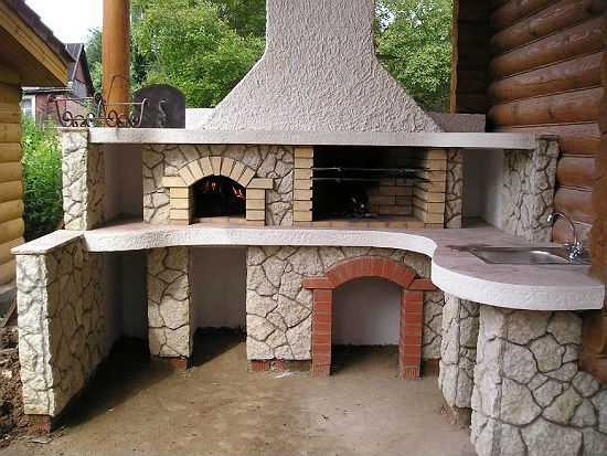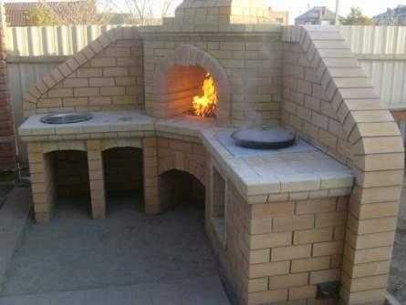 Такая постройка позволяет использовать ее сразу для нескольких дел.Проекты этих конструкций все чаще встречаются на задних дворах владельцев частных домов. Пользователи отдают предпочтение русской печи за многофункциональность в использовании. Если сделать подобную плиту в беседке, то появляется возможность не только жарить шашлыки, но и готовить супы, тушить мясо и овощи, выпекать блины. Вкус еды гриль из кирпичной печки просто изумителен.