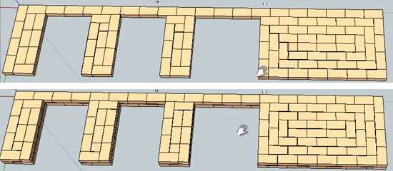 - Половина печи под барбекю продолжается выкладываться с чередованием четных и нечетных рядов.