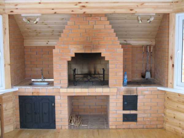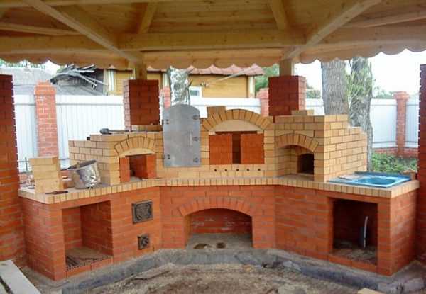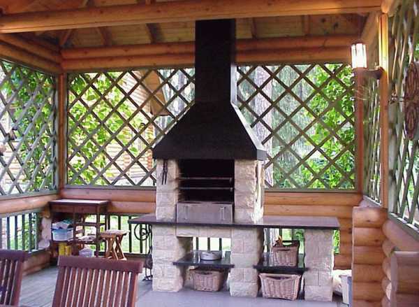 - Печь-барбекю. Это кирпичная конструкция, находящаяся внутри беседки, которая позволяет жарить мясо при помощи специальной решетки.
