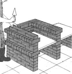 Примечание. Если возводится открытая постройка, то можно обойтись тонкими перегородками в полкирпича либо же использовать кирпичи для формирования решетки, где они укладываются через зазоры, а не вплотную.