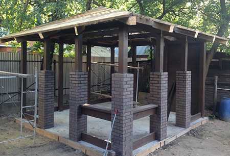 Эта часть проекта требует не меньше внимания, чем сама беседка. Нужно не только учесть размеры зоны барбекю, но и обратить внимание на действующие нормативы пожарной безопасности.