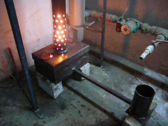 В нижнем отделе сгорает отработанное масло, которое дает некоторое количество тепла и превращается в горючий газ. По трубе этот газ поступает во вторую камеру сгорания, попутно смешиваясь с небольшим количеством воздуха. Полученная газовая смесь при сжигании дает впечатляющее количество тепла.