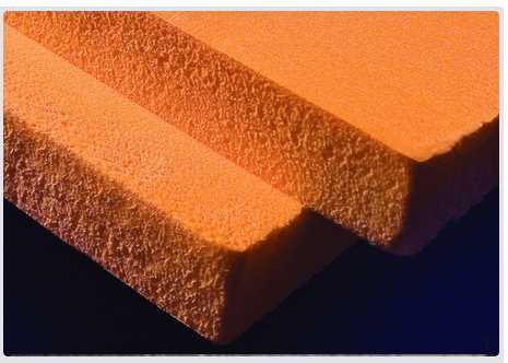 Результат. Структура экструзионного пенополистирола образует множество мелких ячеек, наполненных воздухом. Благодаря тому, что ячейки замкнуты, материал приобретает свойства отличного теплоизолятора. Цвет плит – желто-оранжевый, реже голубой.