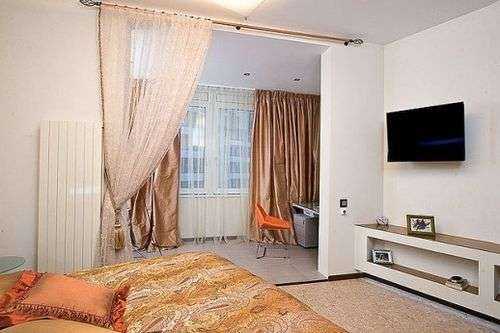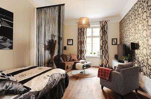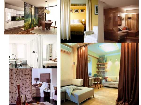 Разделение комнаты шторами на две зоны: варианты зонирования