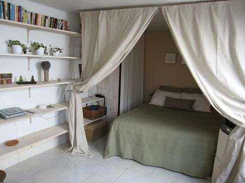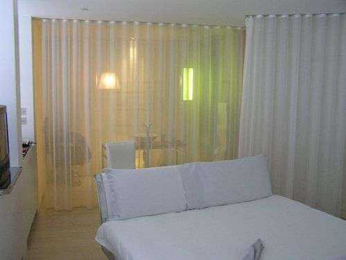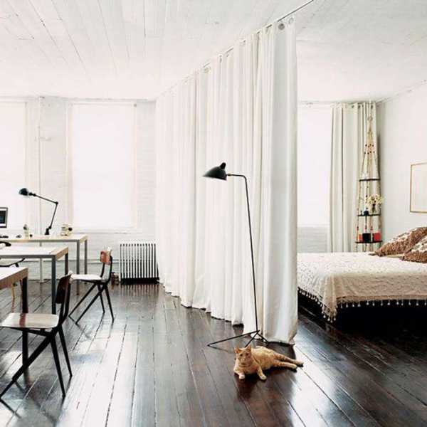 Отличную возможность для создания зон предоставляют шторы. Они придают комнате мягкость и уют. К тому же они мобильны, их можно раздвигать и сдвигать, в этом их большой плюс.