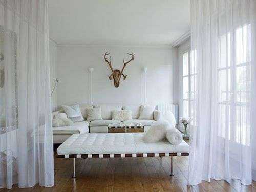 Самый дешевый вариант подвесных перегородок – шторы. Как правило, их используют для того, чтобы поделить комнаты на две или более зоны на конкретное время суток. К примеру, если спальня соединена с кабинетом, в ночное время ее можно отделить от кабинета, воспользовавшись драпированными шторами. Учитывая дизайн помещения, выбирается вариант драпировки, сделанной из дорогостоящих изысканных тканей, имеющих тяжелую текстуру, или гобеленовых, плексигласовых, хлопковых и прочих материалов.