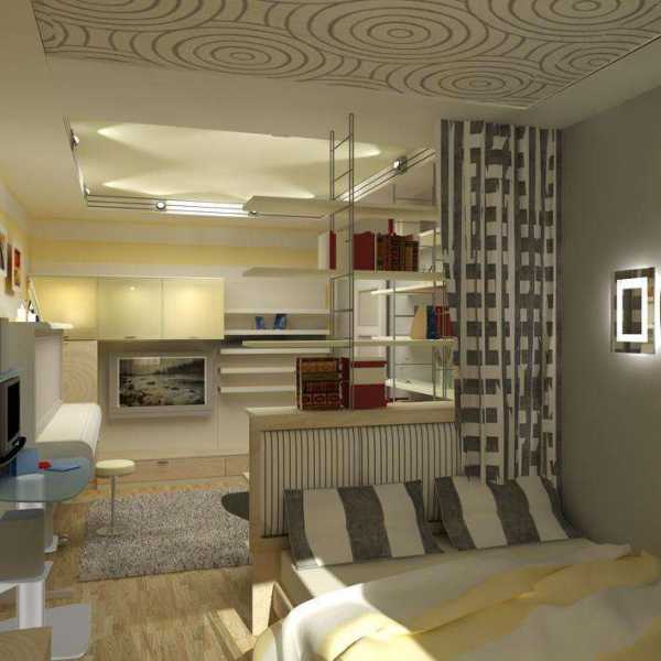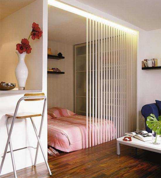 Если квартира невелика, например, состоит из одной комнаты, в ней надо создать зоны, чтобы каждому члену семьи было удобно жить. Эти могут быть зоны для сна, отдыха, работы, еды. Их можно устроить с помощью стеллажа, перегородки, ширмы, штор, жалюзи и т. д. В этом случае помещение становится уютным и комфортным.