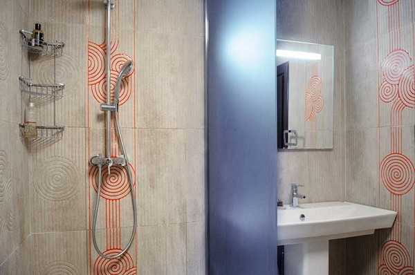 - Если пространство комнаты позволяет устанавливать ванную и душевую кабину, то перегородить их можно конструкцией. Это очень удобно. Одновременно в комнате принимать ванную и душ могут два человека.