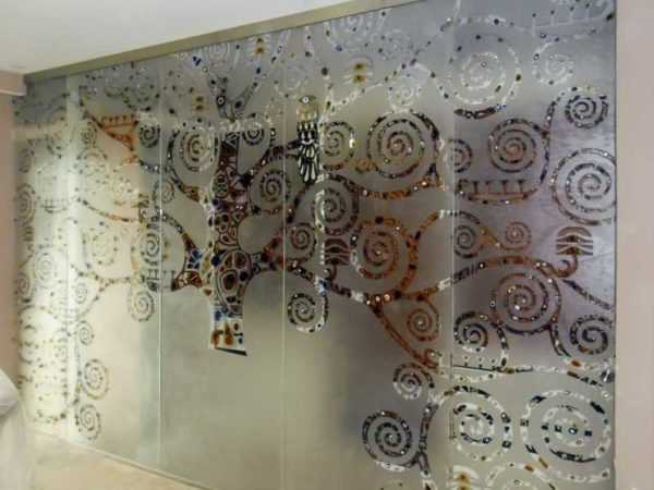 Для классических интерьеров можно на стекле сделать пескоструйный рисунок