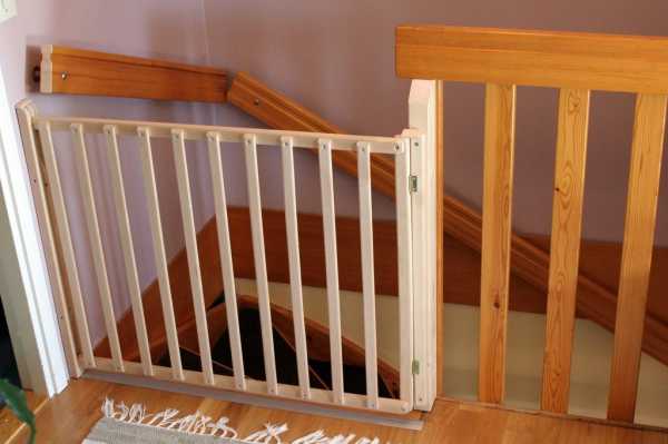 Кроме устройств, совершенствующих конструкцию перил, можно использовать дополнительные сооружения для предупреждения проникновения ребенка на лестницу самостоятельно, без сопровождения взрослых. Это калитка или ворота безопасности. Такая конструкция представляет собой барьер из дерева, пластика или металла, перекрывающий подходы к лестнице сверху и снизу, а также в любом дверном проеме. Кроме того, она защищает от несанкционированного проникновения домашних животных в комнату малыша.
