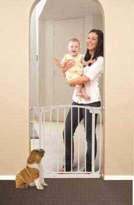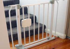 Ворота. Для защиты от прохождения ребенка на лестничный пролет чаще всего устанавливают специальные ворота, которые не позволяют ему пройти наверх или вниз. При необходимости они должны легко открываться, не повреждая предметов интерьера. Подобные ворота можно устанавливать не только на лестнице, но и в дверных проемах. Таким образом вы ограничите передвижение малыша в запрещенные для него зоны.