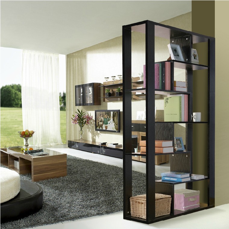 Полки и стойки могут быть расположены симметрично или асимметрично. Вы также можете использовать открытый стеллаж с открытой спиной, который будет работать как «визуальная» перегородка, сквозь которую вы можете видеть, но не можете пройти. Не забудьте оставить достаточно места для перемещения из одной зоны в другую.