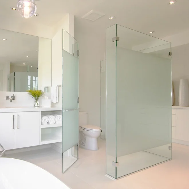 2) Стеклянные перегородки для ванной комнаты могут состоять из одной или нескольких стеклянных панелей.