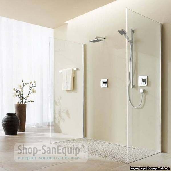 1) Стеклянная душевая перегородка может быть установлена на пол, душевой поддон, на кромку ванны, или на простенок.