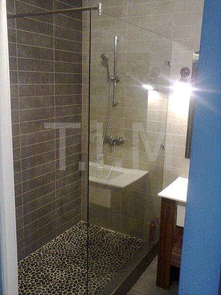 Не стоит также путать душевую перегородку с душевой кабиной – эти конструкции отличаются градусом примыкания стекол. В душевых перегородках он составляет 180°. Перегородка может иметь одну или две дверки. Но чаще всего душевые со стеклянными перегородками имеют одну распашную или раздвижную одностворчатую дверь.