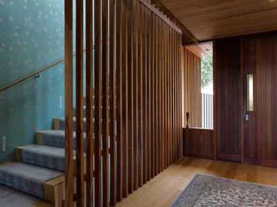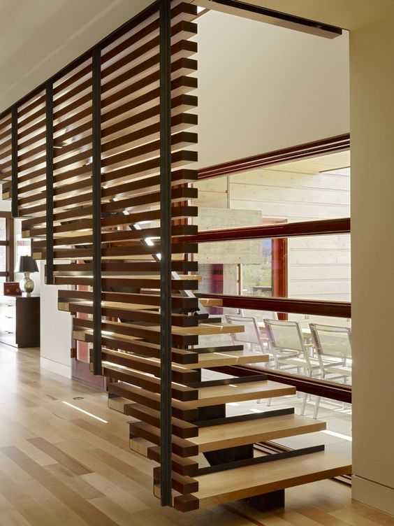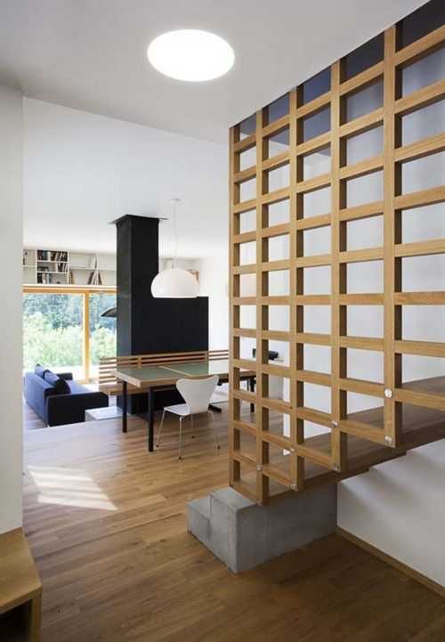 Деревянная перегородка может быть не только функциональной, но и декоративной частью современного интерьера.