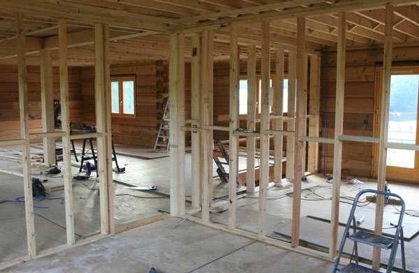 Деревянные перегородки, как правило, возводятся уже после завершения строительства. Их основная задача – зонирование пространства.