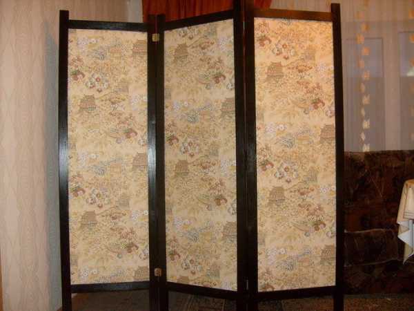 - Ширма. Для производства ширмы можно воспользоваться акрилом, пластиком, плотной бумагой, тканью и т.д. Если вы оборудуете внутреннюю сторону конструкции крючками и небольшими полочками, то у вас получится гардеробная.