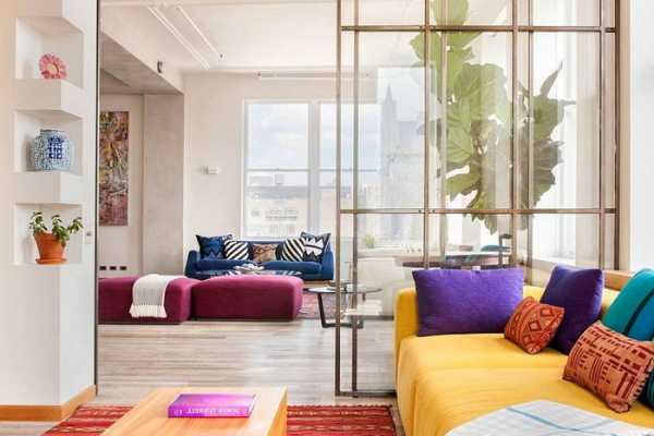 Справится с неудачной планировкой квартиры можно используя стеклянные перегородки, которые пропускают солнечный свет вглубь помещений.