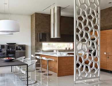 Особо выделяется такая разновидность, как декоративные перегородки. Они не создают изолированных помещений, но зонируют пространство, обеспечивая привлекательный интерьер. В этом назначении выделяются такие направления: ажурные конструкции, использование резных элементов, перегородки-стеллажи.