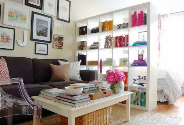 - Низкая. Разделение – чисто формальное. Можно использовать как столик или полку для книг, цветов, косметики и т.д.;
